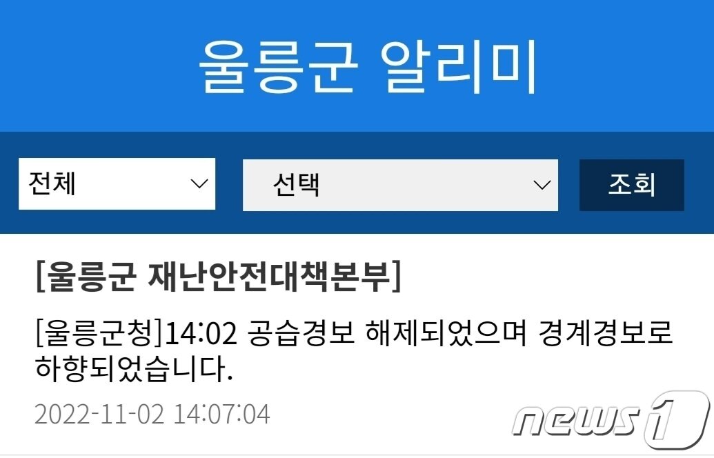 Web 25분 늦은 대피안내 문자. 화생방무기를 포함한 적의 항공기 유도탄 또는 지ㆍ해상전력에 의한 공격이 예상 될 때 공습경보. 울릉군은 주민들에게 대피를 알리는 문자메시지도 경보가 끝나고 20분가량 지난 9시19분쯤.